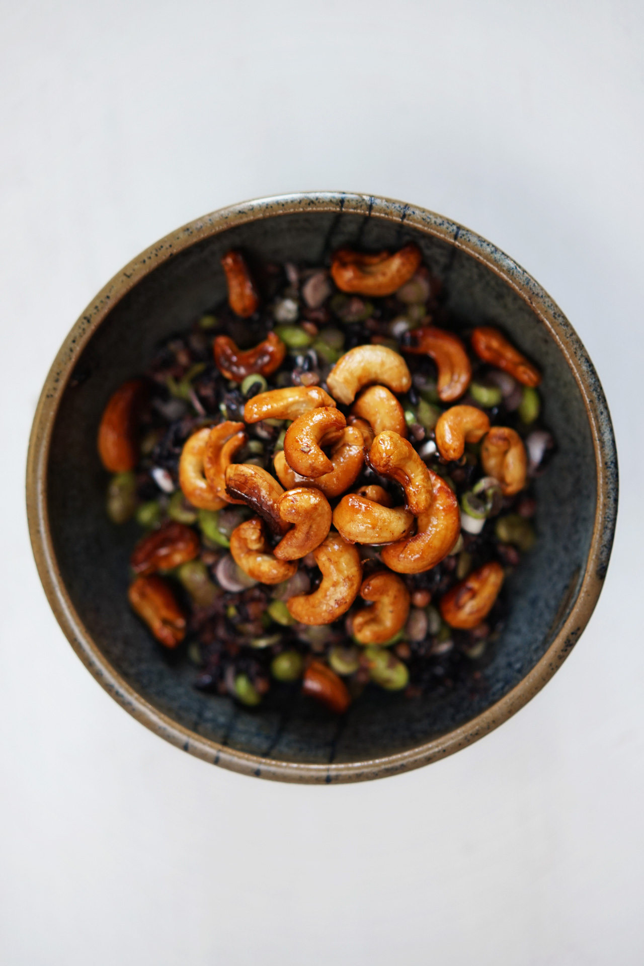 Schwarzer Reissalat mit Edamame, Linsen und gerösteten Chashews